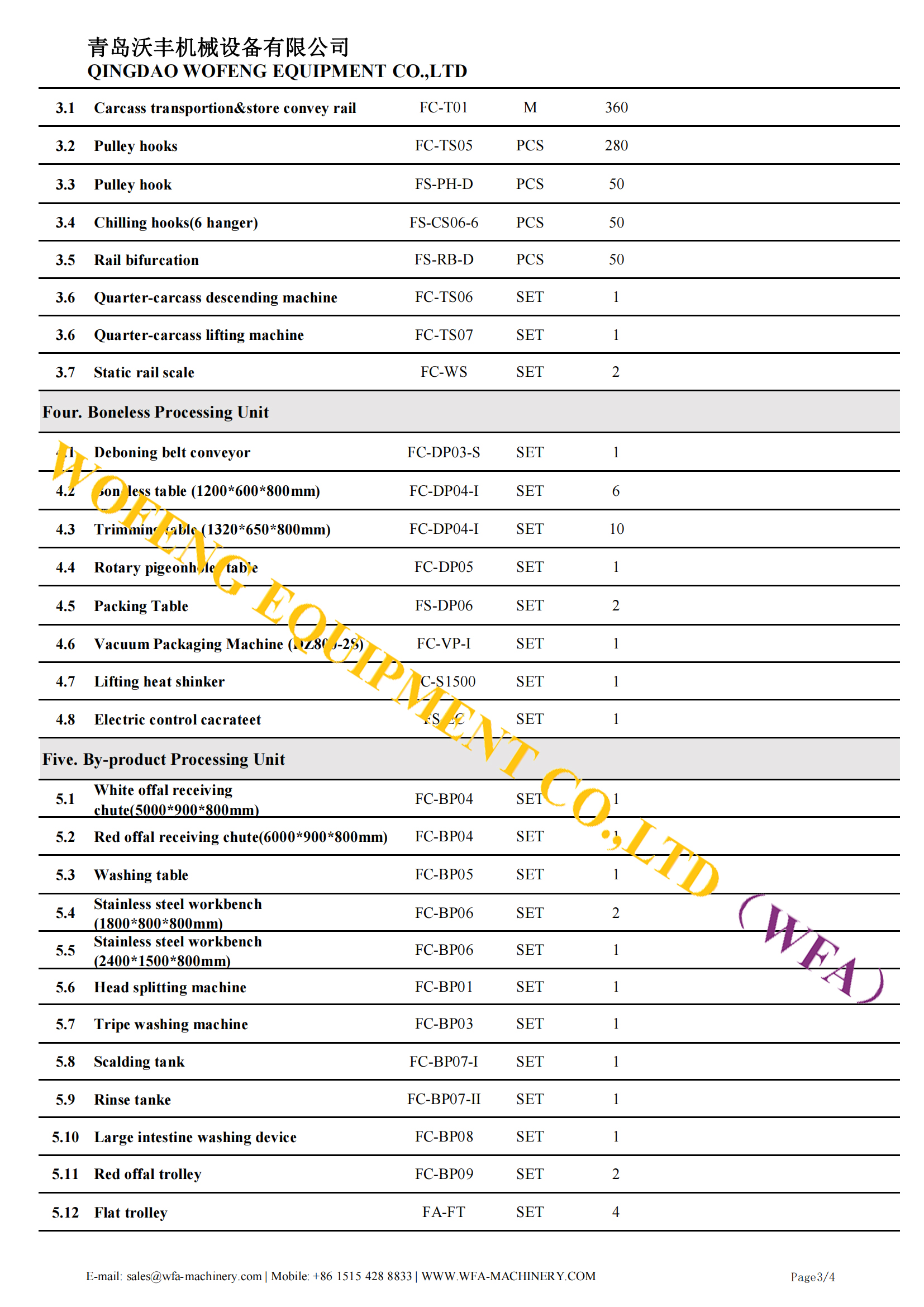 WFA MEAT PROCESSING EQUIPMENT