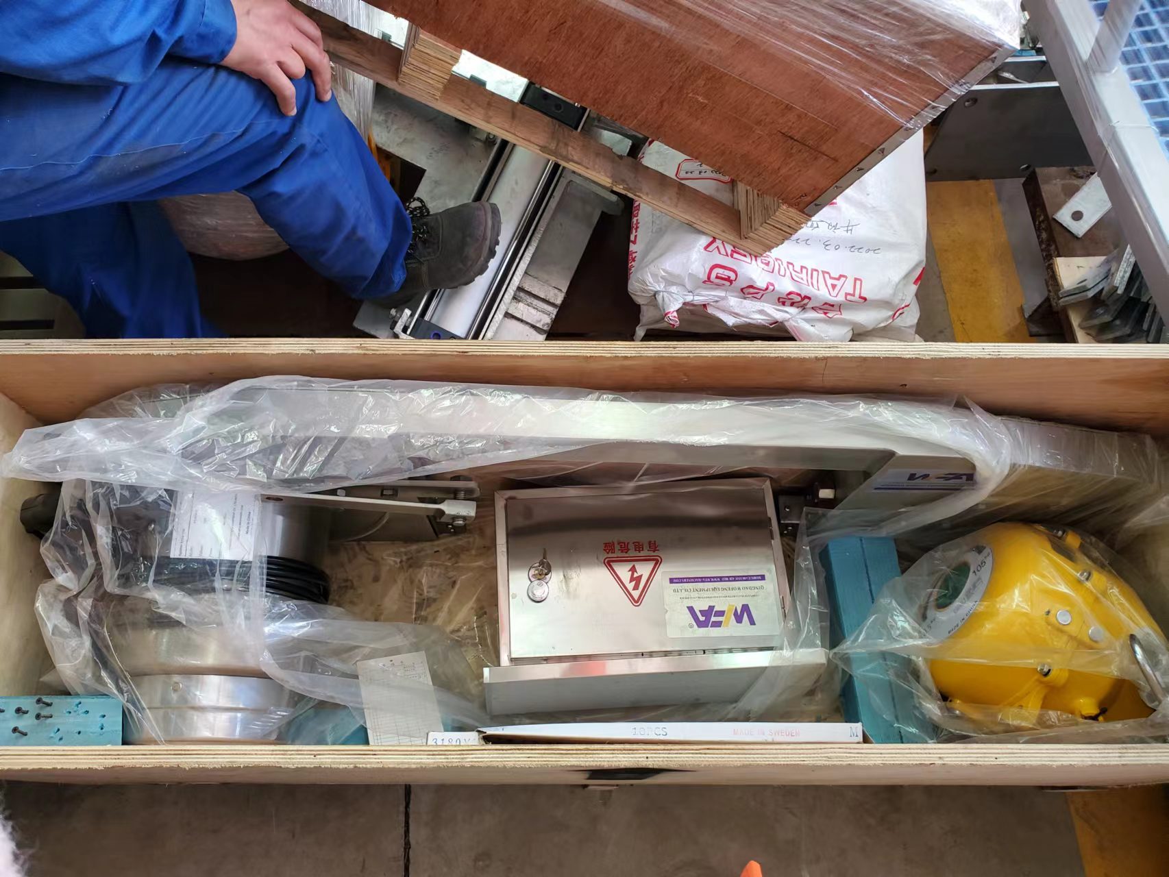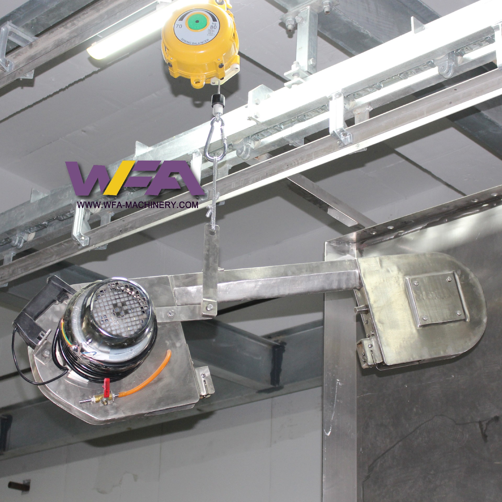 Installation method: Suspended under the steel beam by balance in cow slaughtering line